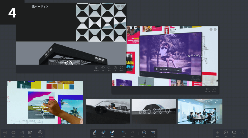 画像だけではなく、動画、PDF、PowerPointなどのマルチファイルをホワイトボートに挿入可能。